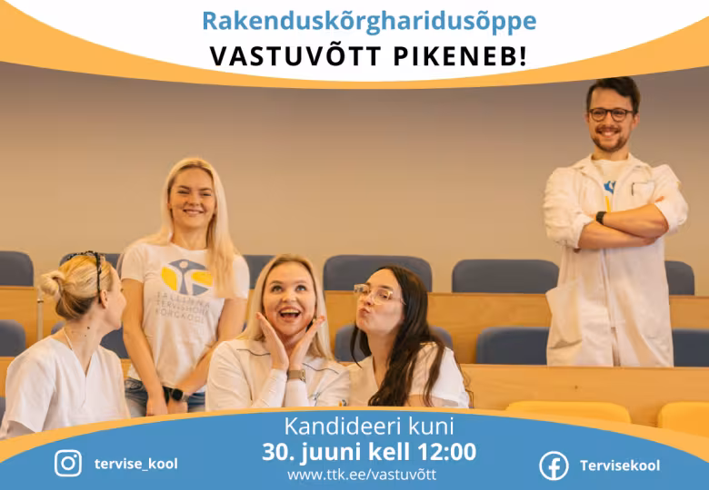VASTUVÕTT PIKENEB | Tallinna Tervishoiu Kõrgkooli rakenduskõrghariduse õppekavadele saab SAIS-is dokumente esitada kuni 30. juuni kell 12.00