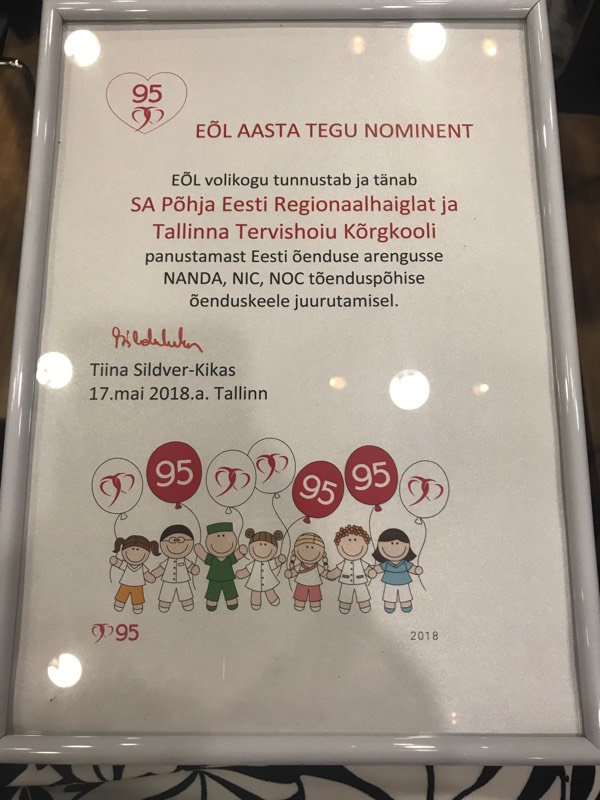 Eesti Õdede Liidu 95. aastapäevale ja rahvusvahelisele õdede päevale pühendatud konverentsil "Tervis kui inimõigus" tunnustas ja tänas Eesti Õdede Liidu volikogu Aasta Tegu nominendina nii Tallinna Tervishoiu Kõrgkooli kui Põhja-Eesti Regionaalhaiglat panustamast Eesti õenduse arengusse NANDA, NIC, NOC tõenduspõhise õenduskeele juurutamisel.