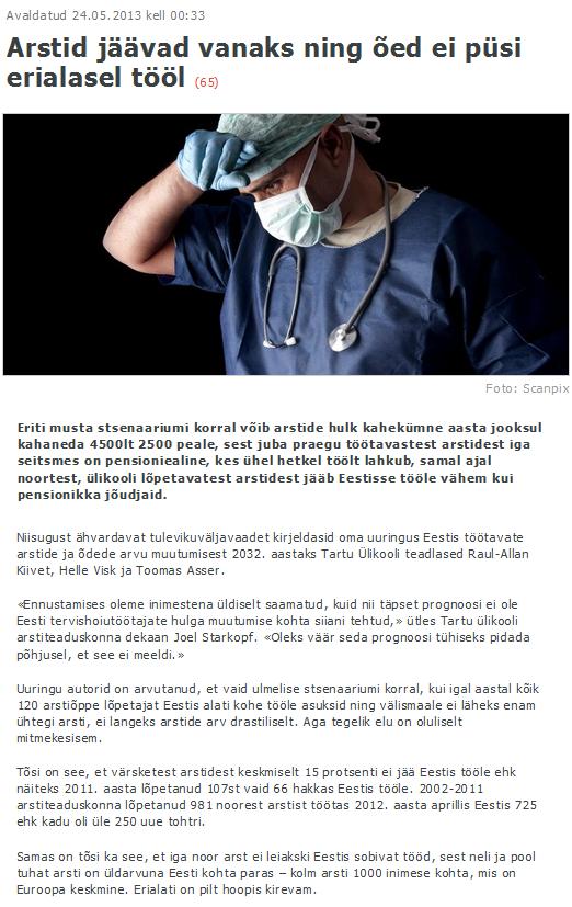 Arstid jäävad vanaks ning õed ei püsi erialasel tööl (Postimees)
