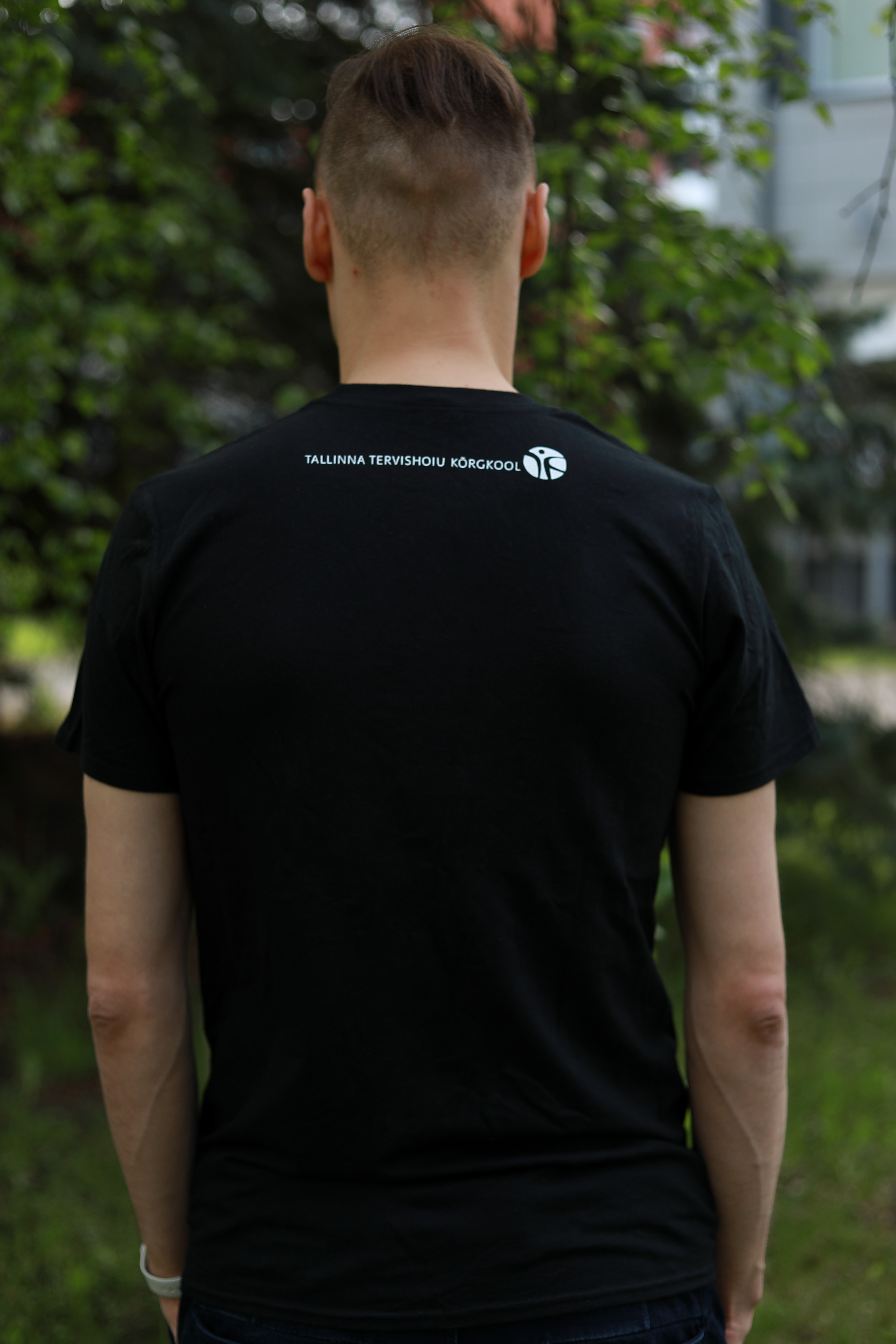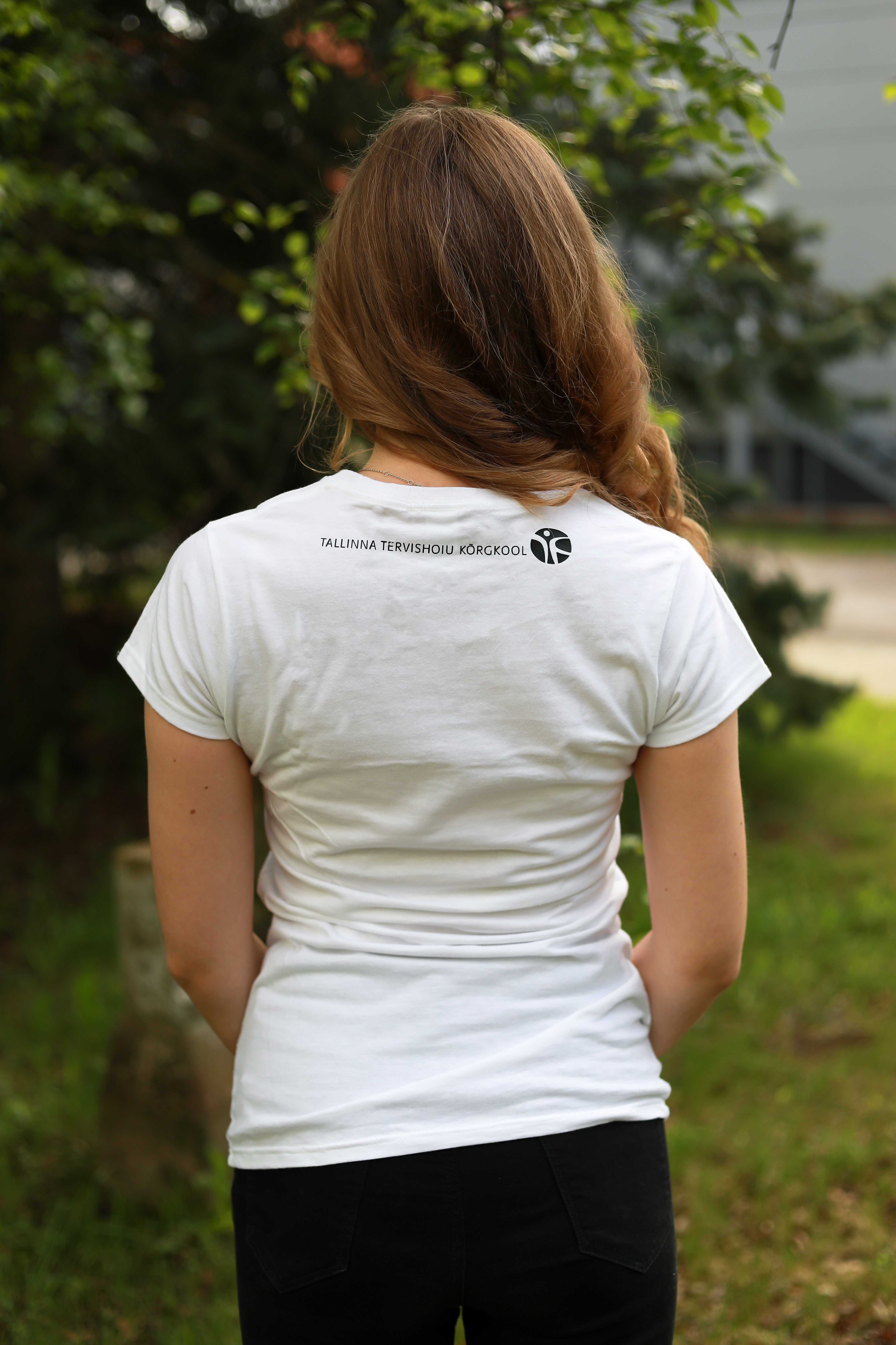 Turja peal must kõrgkooli logo. Naiste, meeste suurused (S, M, L..). ETTETELLIMISEL!Kõrgkooli logoga valge T-särk 10 EUR (KOHE OLEMAS)