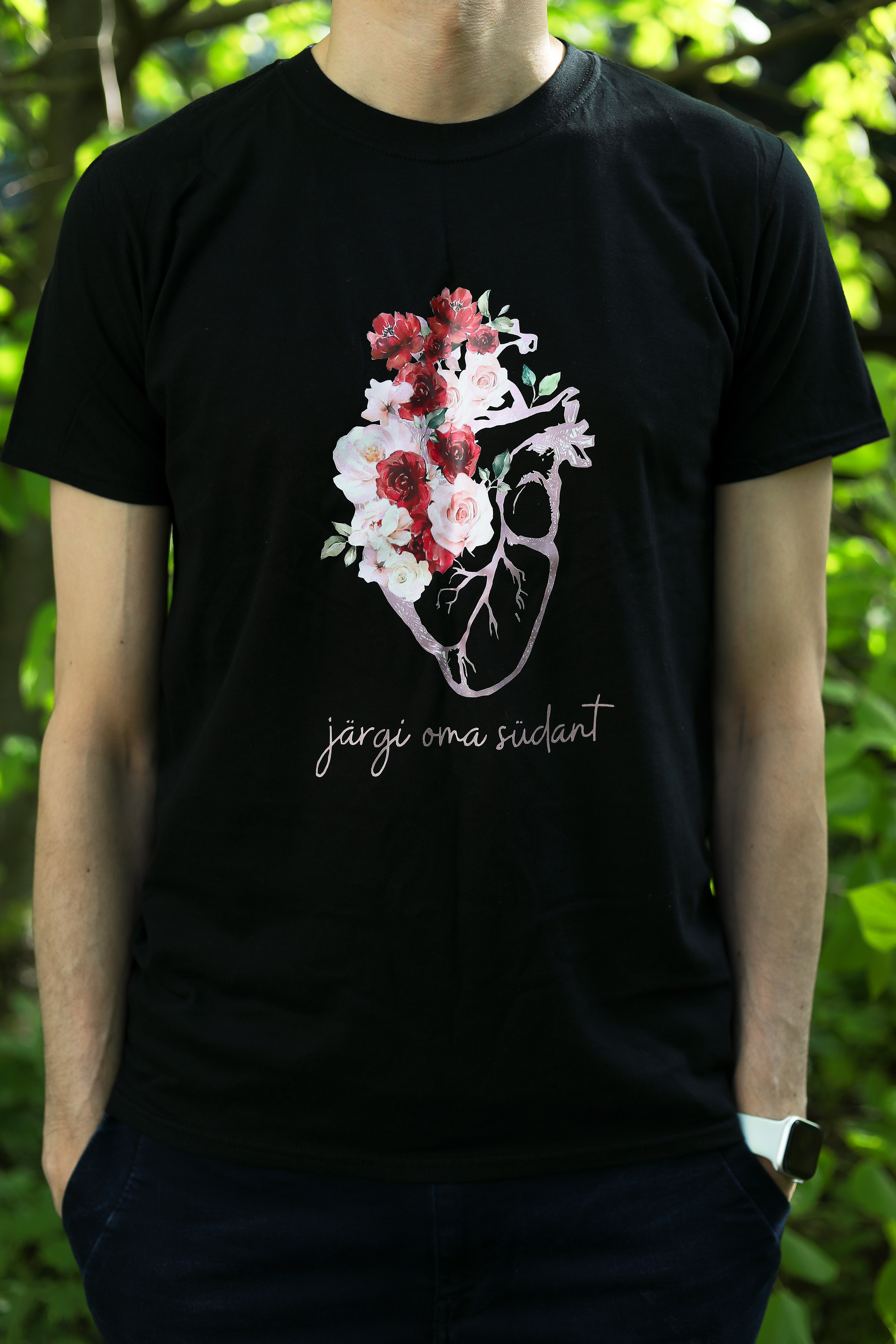 Turja peal valge kõrgkooli logo. Naiste, meeste suurused (S, M, L..). ETTETELLIMISEL!Must T-särk "Järgi oma südant", 14 EUR