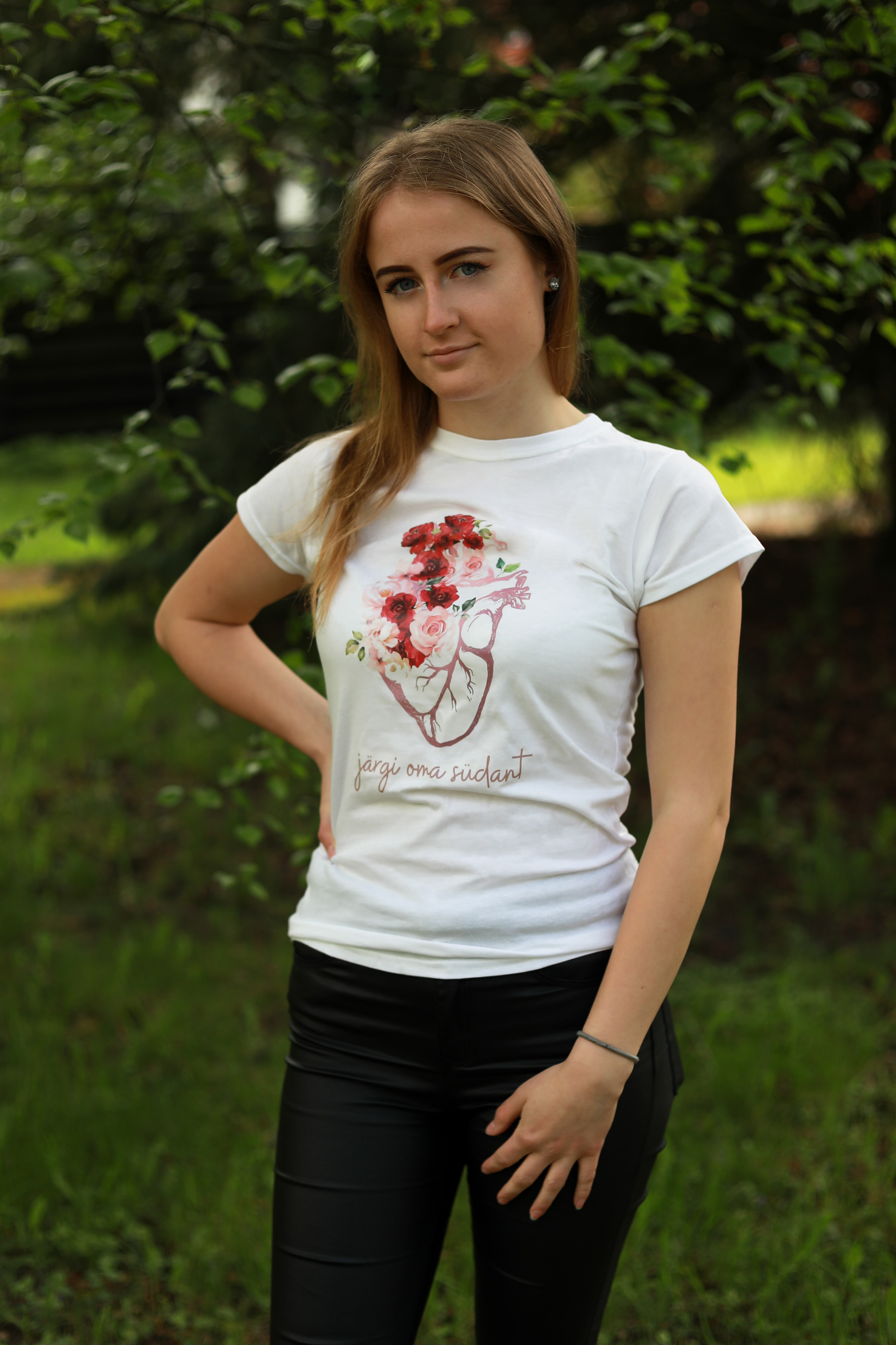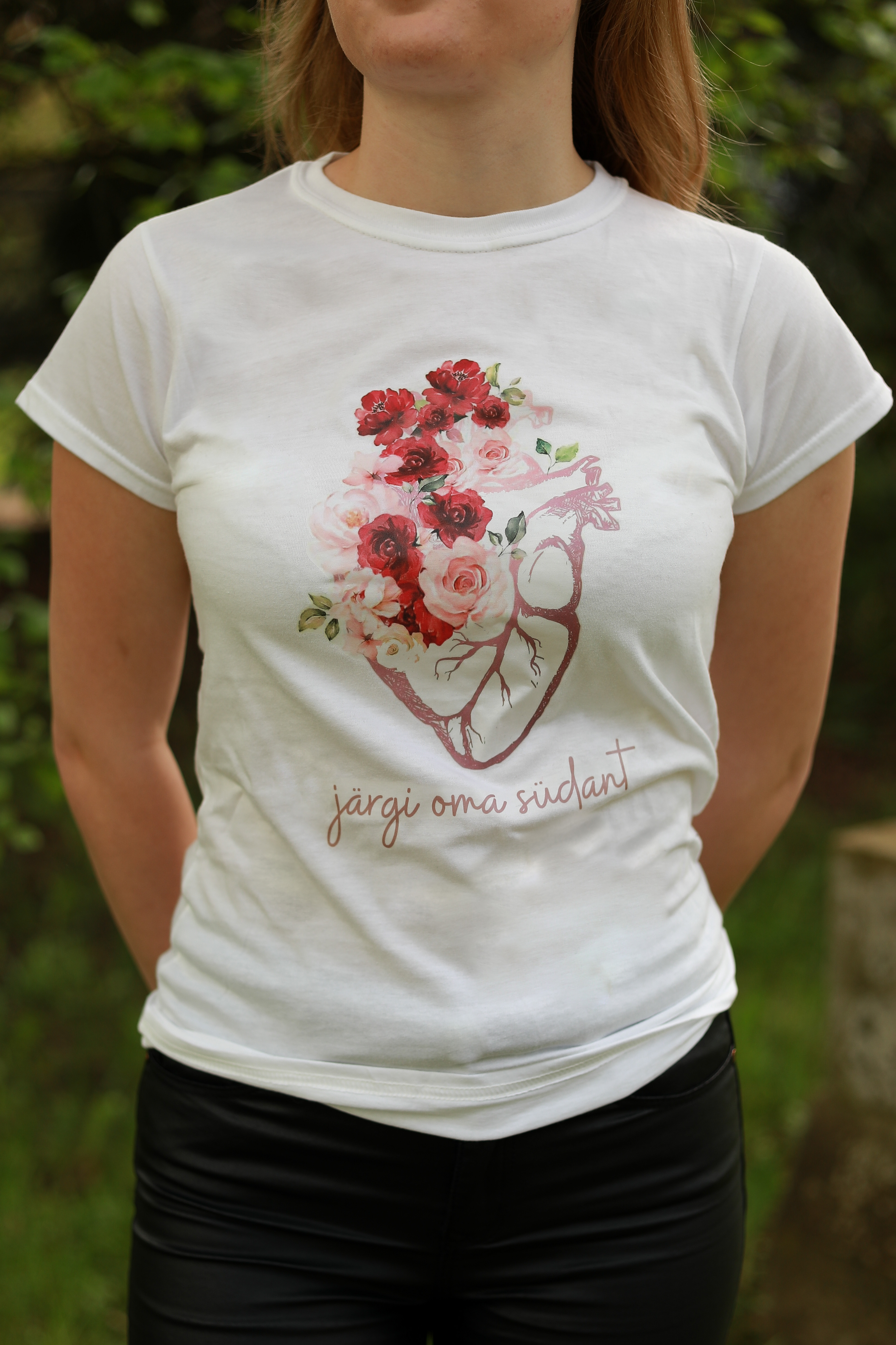 Turja peal valge kõrgkooli logo. Naiste, meeste suurused (S, M, L..). ETTETELLIMISEL!Valge T-särk "Järgi oma südant", 14 EUR