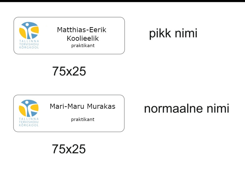Praktikabaasides kasutatavaid Tallinna Tervishoiu Kõrgkooli nime ja logoga rinnasilte on võimalik tellida firmast Gravex.