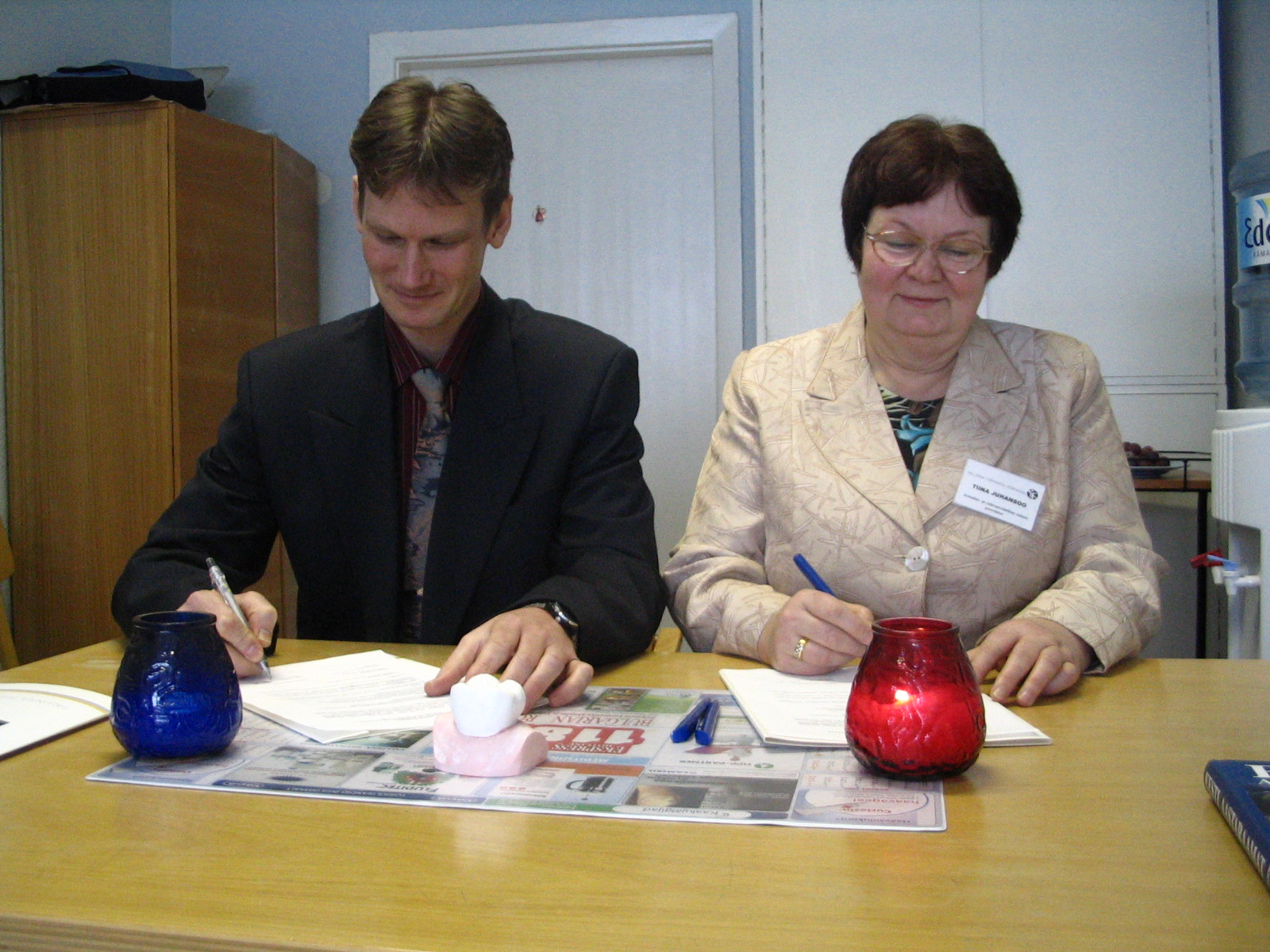 Tallinna Tervishoiu Kõrgkooli prorektor Tiina Juhansoo ja Tallinna Tehnikakõrgkooli mehhaanikateaduskonna dekaan Vello Vainola koostöölepingut allkirjastamas