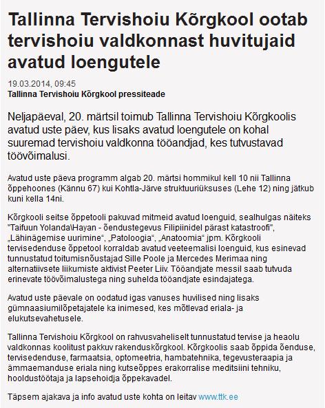 - Tervishoiukõrgkoolid läbisid edukalt akrediteerimise (Õpetajate Leht)